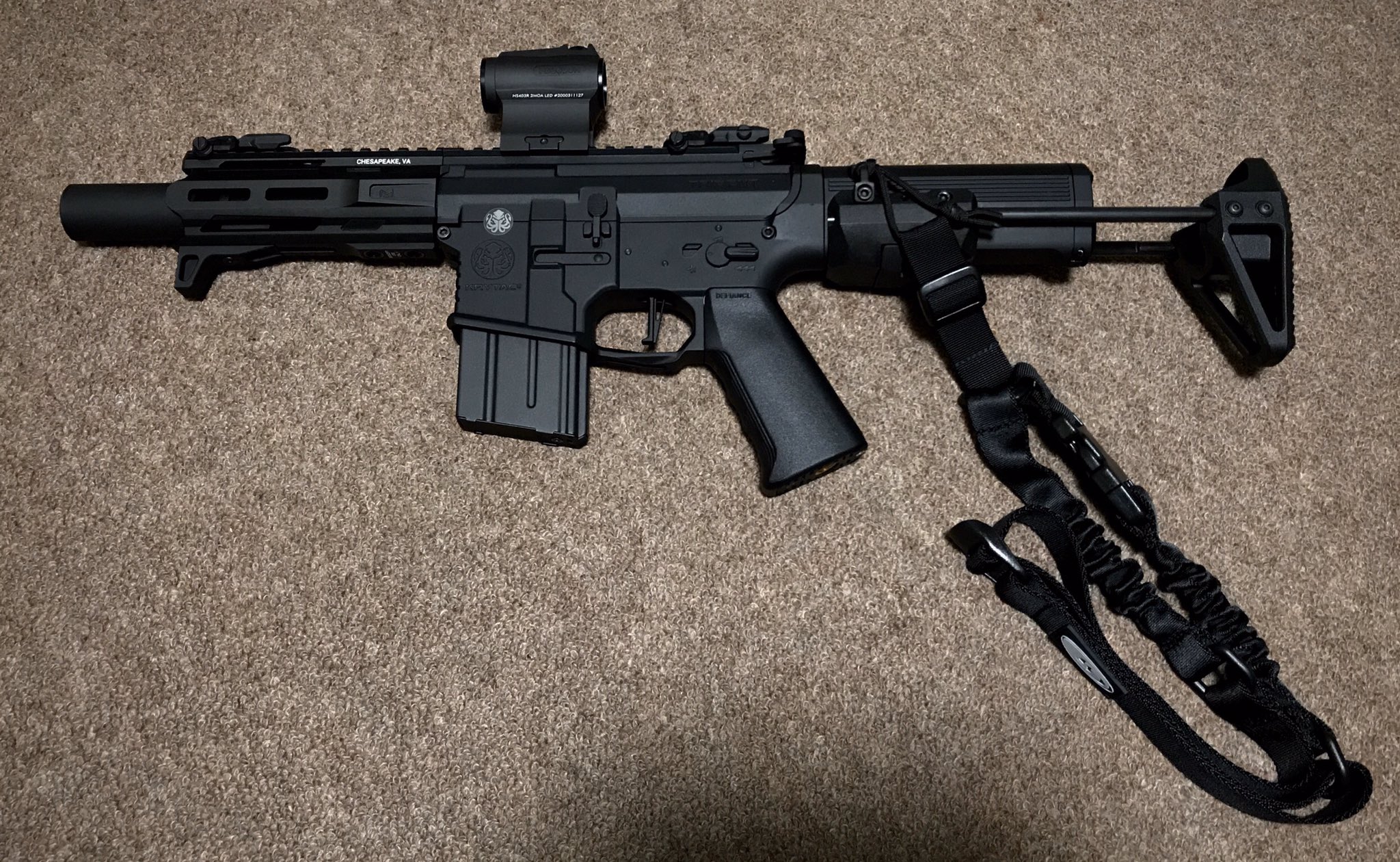 もす こっとん On Twitter 外装カスタム Krytac Trident Mk2 Pdw M Lay Lax Mod2 30f70mmサイレンサー マルイショートマガジン Slr Mod1タイプハンドストップ Holosun403rドットサイト サテライトトライワンポイントスリング 今夜はこれをアテに一杯 Krytac